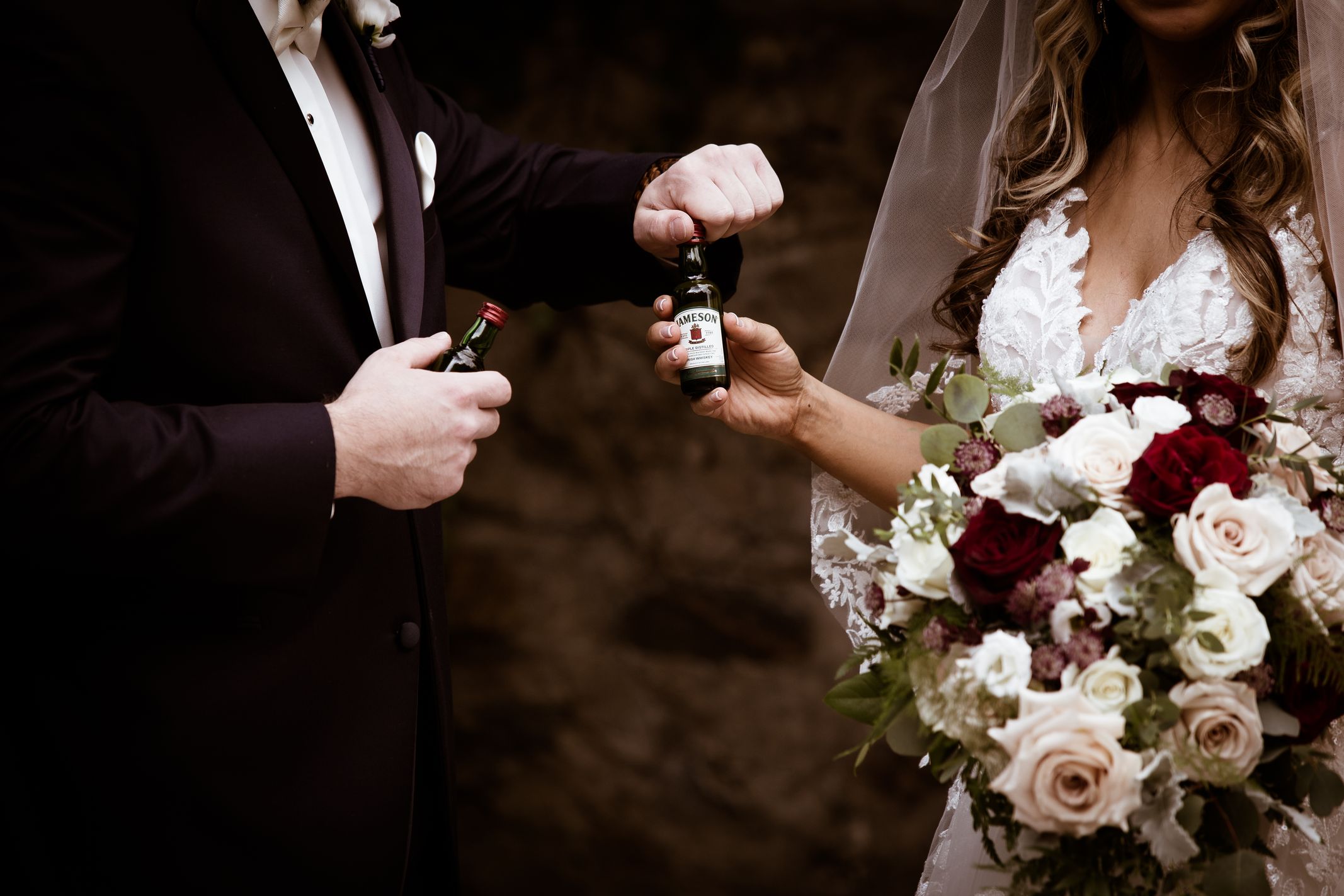 One would think these two just started dating by the way they are so smitten beyond words with one another. But no, it’s been four years together, one home purchased, one daughter born, and a gorgeous wedding planned… and not to mention going through Covid times together! Danielle & Nick have such a beautiful way about them. We laughed with them the entire day and had a few moments where their little girl melted our hearts. We are so ridiculously happy for this beautiful family and their family and friends. Cheers! Enjoy some of my personal favorite details and moments from the day… it was definitely hard to choose and cut it down! #makeiteverlastingCT #StClementsCastle #firstlook #fallwedding #OccasionsBridal #outdoorceremony #suspendersswag #love #jamesonshot